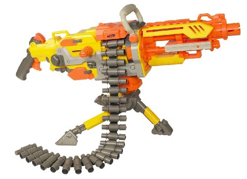 The Low prices with biggest nerf gun. The Nerf N-Strike Vulcan EBF-25 Blaster - Yellow Complete your N-Strike arsenal and prepare for the ultimate in battery-powered blasting! Be ready for any battle with the Nerf N-Strike Vulcan EBF-25 Blaster-- an awesome, fully automatic dart cannon! Load the blaster with fresh batteries and fire at a rate of up to three darts per second! Watch as the belt feeds automatically through the blaster, letting the barrage of firepower continue as you battle your opponent. The piston-powered internal launching system makes it an unstoppable force! Switch to single-shot mode for precision blasting. The removable tripod folds for easy transport or a quick escape from enemy fire! Even your toughest opponent wont know what hit him! Blaster comes with ammo box, folding tripod, 25-dart belt, and 25 Sonic Micro Darts ammo and instructions. Requires 6x 'D' batteries, not included. Ages 6 and up. Nerf N-Strike Vulcan EBF-25 Blaster - Yellow biggest nerf gunThe best products with biggest nerf gun